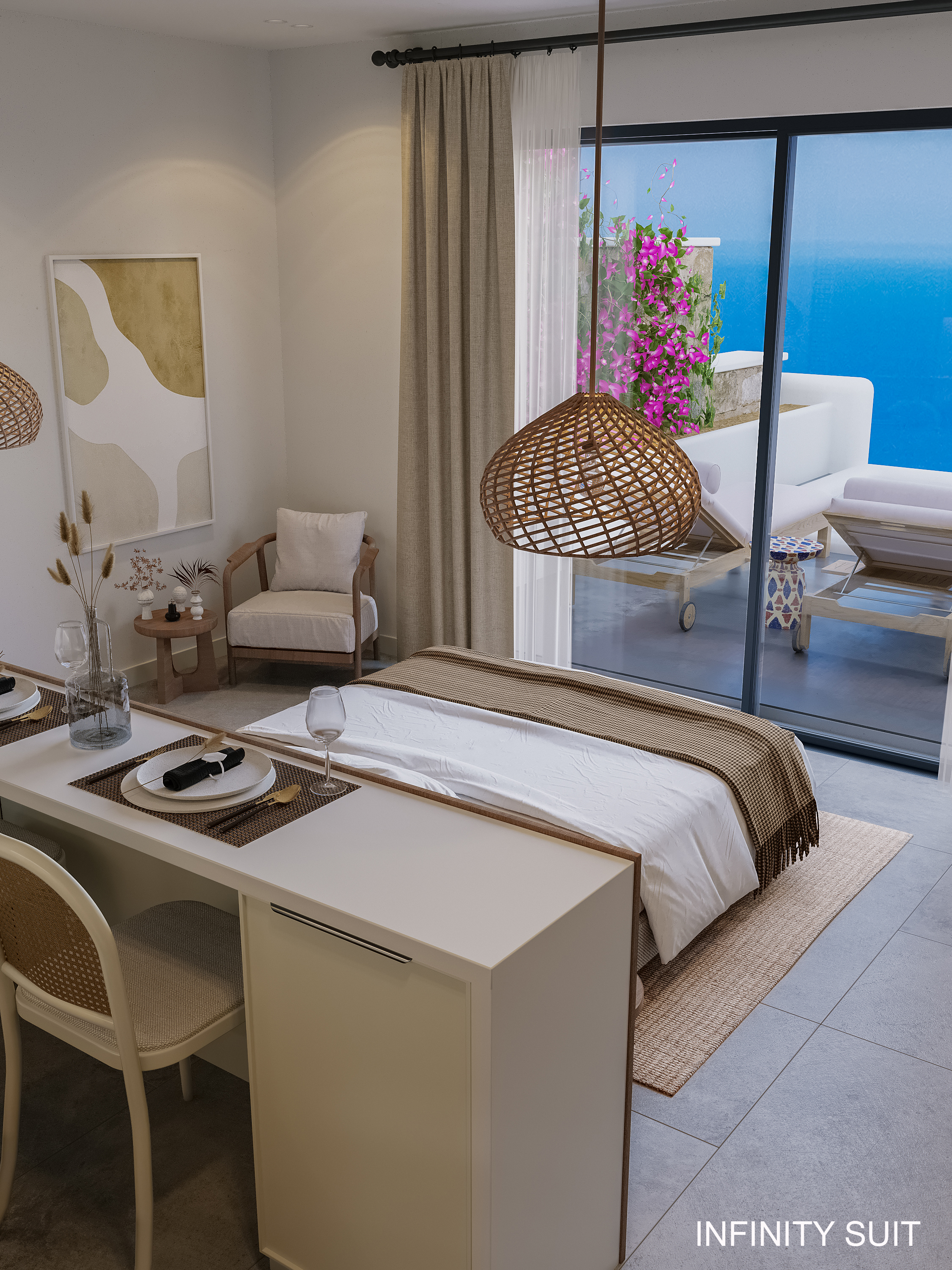2. Private pools: Each apartment in the complex is equipped with its own infinity pool, which adds luxury and comfort to the daily life of residents. The water in the pools creates a sense of infinity and integrates with the sea view.