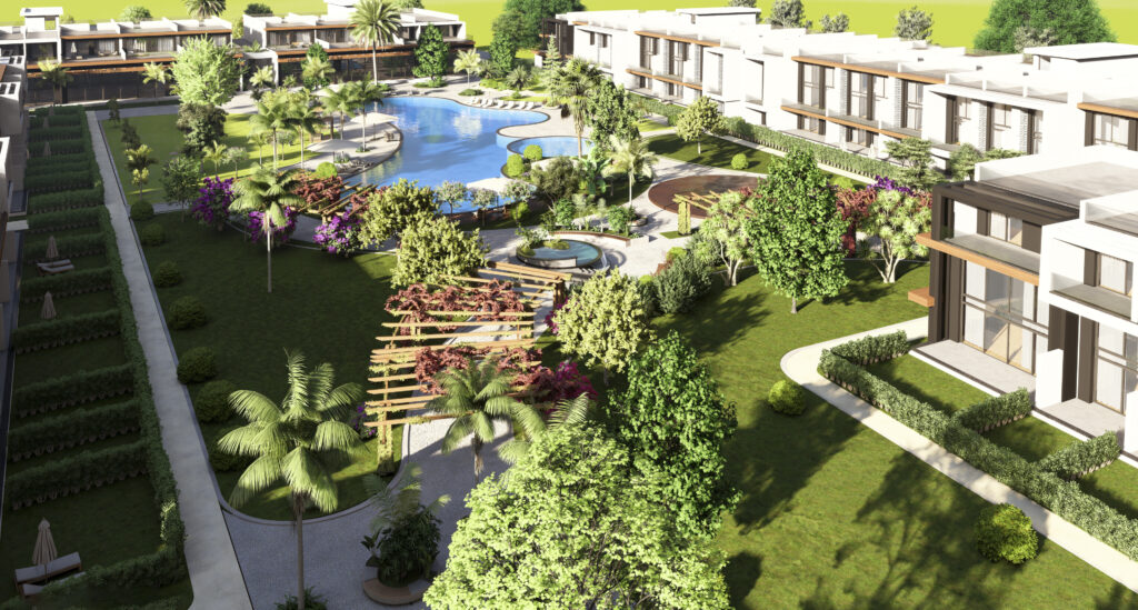 The complex is located 600 meters from the Mediterranean Sea in the area of Long Beach Iskele.
