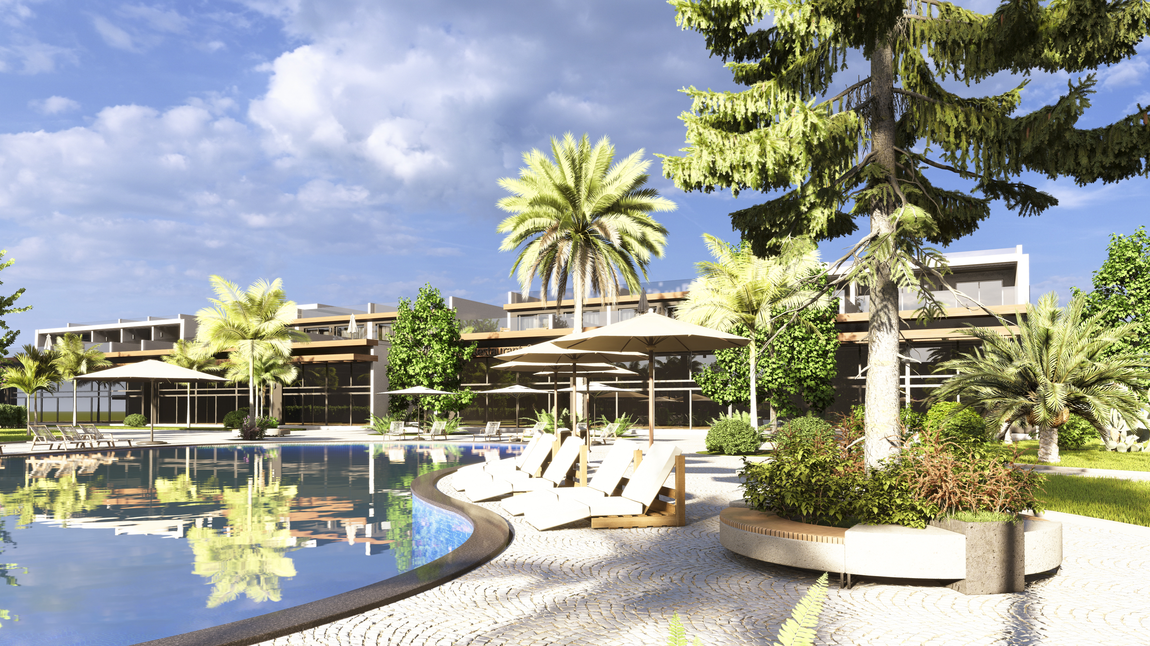 The complex is located 600 meters from the Mediterranean Sea in the area of Long Beach Iskele.