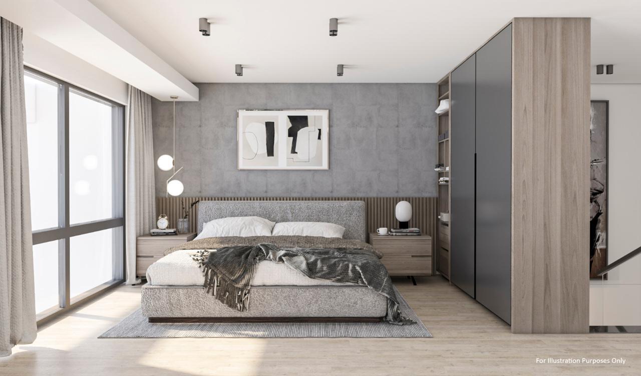 The kitchens are equipped with designer natural stone finishes, and the bedrooms have built-in wardrobes with mirrors.